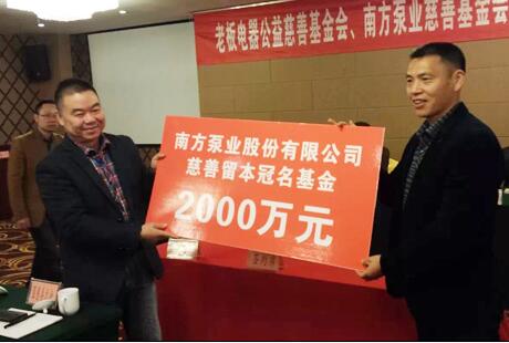 南方泵業(yè)斥資2000萬(wàn)元成立慈善留本冠名基金