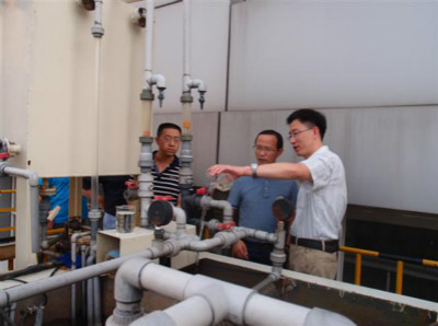在金山環(huán)保董事長錢盤生、南方泵業(yè)執(zhí)行總經(jīng)理魯炯、副總經(jīng)理姚文彪等領導的陪同下,施秘書長等一行領導先后參觀了公司的新技術與裝備展示區(qū)、公司承建的大型工程展示中心、小試及中試裝置等設施,并重點實地考察了公司國內首創(chuàng)的太陽能低溫復合膜處理污泥及餐廚垃圾的技術示范基地。