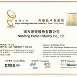 展會同期還舉行了2013泵閥行業(yè)-榮格技術(shù)創(chuàng)新獎的頒獎典禮,該活動由榮格工業(yè)傳媒及旗下《世界泵業(yè)—中國版》雜志聯(lián)袂中國環(huán)博會(IE expo)共同舉辦,共評選出19家對我國泵閥行業(yè)做出突出貢獻(xiàn)的19家國內(nèi)外知名企業(yè),涵蓋了五大類共19項創(chuàng)新產(chǎn)品。南方泵業(yè)的NSC單級雙吸中開式離心泵憑借突出的技術(shù)優(yōu)勢被評選為“離心泵”類產(chǎn)品中的技術(shù)創(chuàng)新獎。