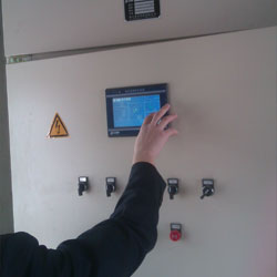 該項目為泵房改造項目,系統(tǒng)流量600m3/h,揚程118m,采用南方泵業(yè)5臺不銹鋼多級立式離心泵并聯(lián)組成的DRL120-60-1成套變頻供水設(shè)備。泵組過流部件均采用SUS304不銹鋼材質(zhì),泵出水口均加裝軟接,設(shè)備出口端加裝了DN300電磁流量計直接讀取出水流量,并采用數(shù)據(jù)線將電磁流量計數(shù)據(jù)傳輸至PLC直接顯示在屏幕上,因高爾夫球場草坪的噴淋瞬間流量變化比較大,同時對不同天氣不同時段噴水的量要求精度較高,這樣能使用戶更直觀的監(jiān)控到瞬間用水量及累積用水量。