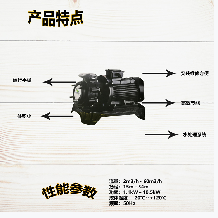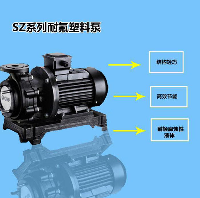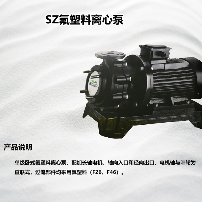南方SZ單級(jí)臥式氟塑料離心泵,配加長軸電機(jī),軸向入口和徑向出口,電機(jī)軸與葉輪為直聯(lián)式,過流部件均采用氟塑料(F26、F46)。