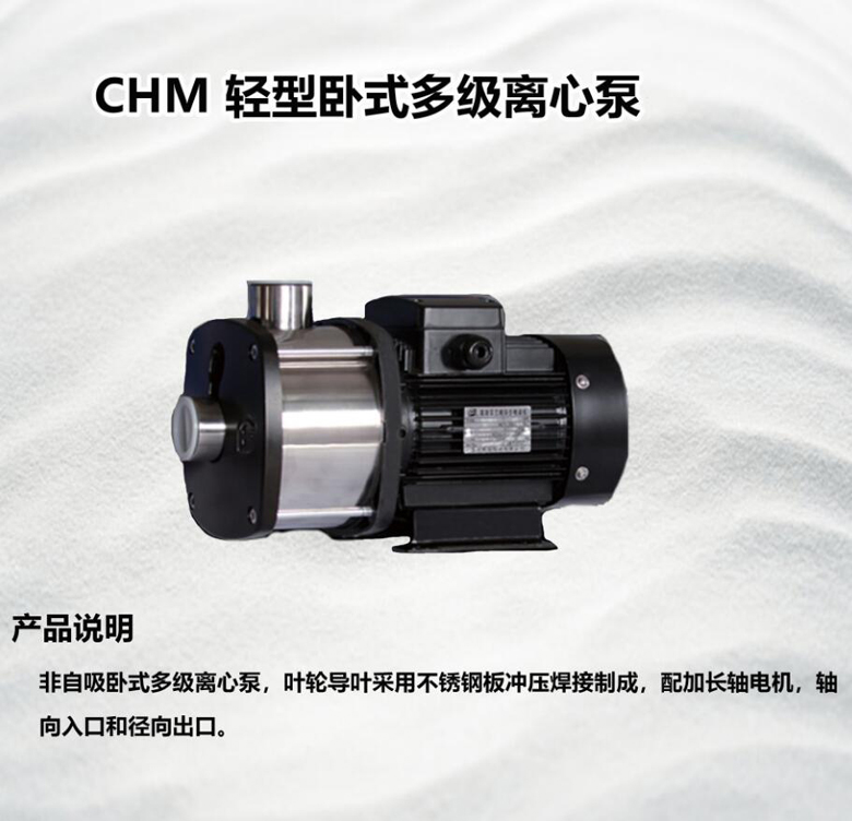 南方CHM 輕型臥式多級離心泵非自吸臥式多級離心泵,葉輪導葉采用不銹鋼板沖壓焊接制成,配加長軸電機,軸向入口和徑向出口。