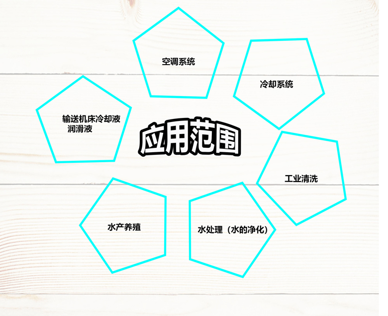 空調系統(tǒng)、冷卻系統(tǒng)、工業(yè)清洗、水處理(水的凈化)、水產養(yǎng)殖、施肥/計量系統(tǒng)、環(huán)境應用、供水和增壓