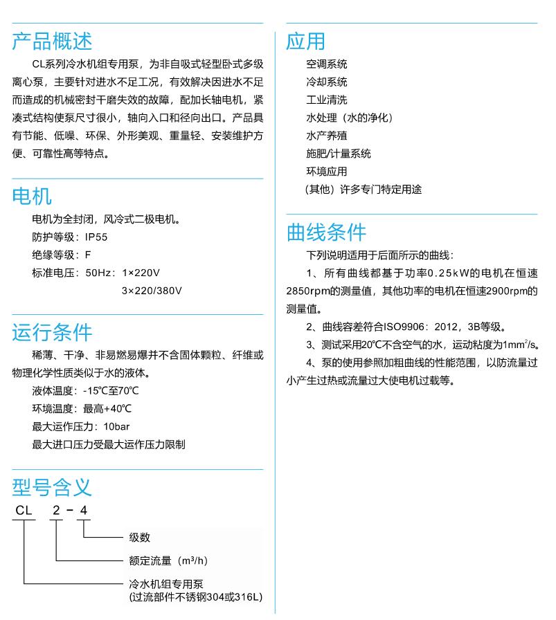 南方CL系列冷水機(jī)組專用泵,非自吸式輕型臥式多級(jí)離心泵,主要針對(duì)進(jìn)水不足工況,有效解決因進(jìn)水不足而造成的機(jī)械密封干磨失效的故障,配加長(zhǎng)軸電機(jī),緊湊式結(jié)構(gòu)使泵尺寸很小,軸向入口和徑向出口,產(chǎn)品大部分零件采用沖壓工藝,具有節(jié)能、低噪、環(huán)保,外形美觀、重量輕、安裝維護(hù)方便、可靠性高等特點(diǎn)。