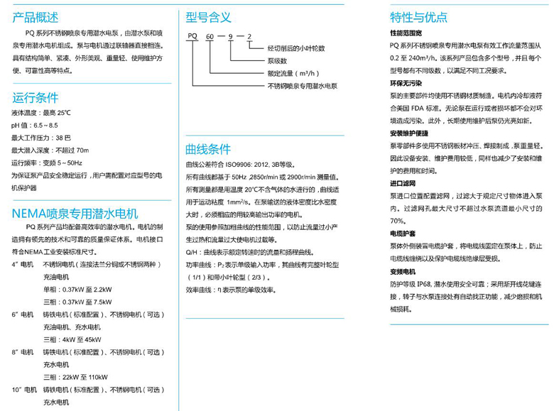 南方PQ不銹鋼噴泉專用潛水電泵,由潛水泵和噴泉用潛水電機(jī)組成。泵與電機(jī)通過聯(lián)軸器直接相連。適用于景觀音樂噴泉專用。